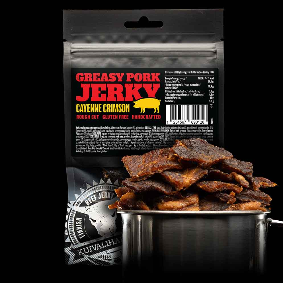 All products » All products » Greasy Pork Jerky Cayenne Crimson 40g