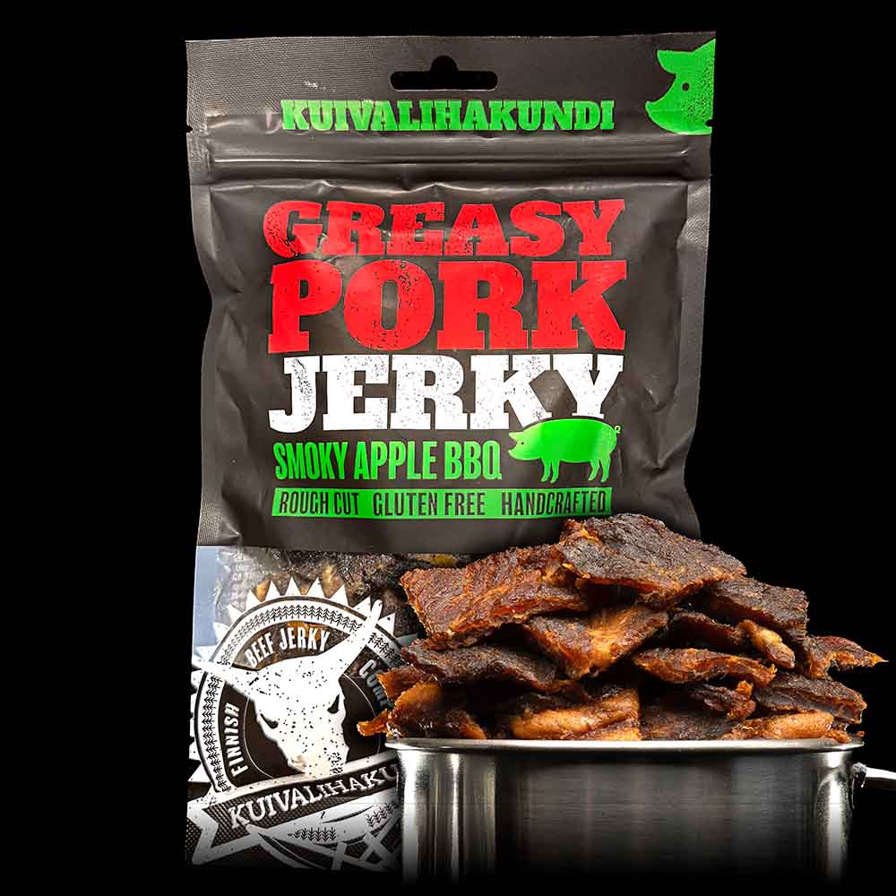 Greasy Pork Jerky Smoky Apple BBQ: Grab it, devour it, and regret nothing.